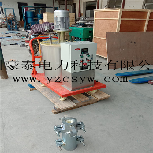 可根據需要設定加熱溫度(調溫),并對布置于桶體上的熱電阻進行監控。 密封組件采用鋁合金鑄造而成。采用部分式結構,用鉸鏈螺栓連接結構,部分面采用軟聚酯密封條。密封圈用耐磨橡膠制成,特殊的結構型式可以方便固定于鋼絲繩上;在兩端增加減磨導套,該導套主要是對鋼絲繩進行導向,延長密封圈的壽命。在密封本體的外側的2個鉸點及相應連接裝置,用于在井口(車房)等位置固定密封頭。 控制箱主要用于油泵電機的啟停和電加熱器的溫度控制,其中溫度控制采用CST系列溫控儀配Pt100熱電阻(0-200度)。采用輕觸式按鍵的操作面板,可靠,美觀大方,電源采用交流三相四線制380V電壓供電。